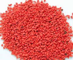 具有顏色柔和和彈性高等特點,摻入塑膠場地中,能防止刺眼光線的反射。